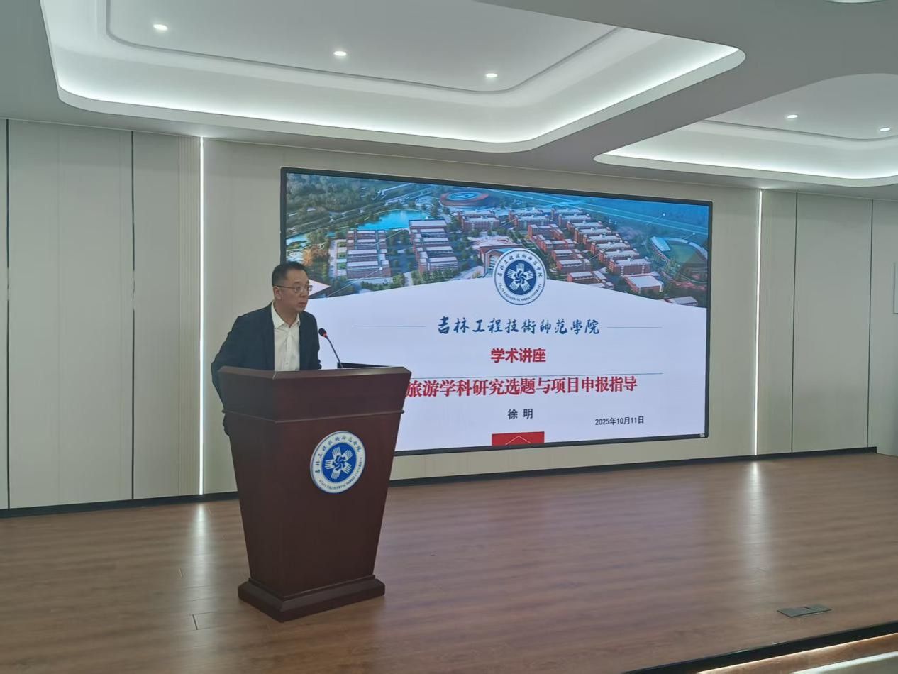 10月11日,beat365中文官方网站举办《旅游学科研究选题与项目申报指导》专题学术讲座。本次讲座邀请到吉林财经大学教师教学发展中心主任、吉林省冰雪经济研究院副院长、硕士生导师徐明教授担任主讲嘉宾。